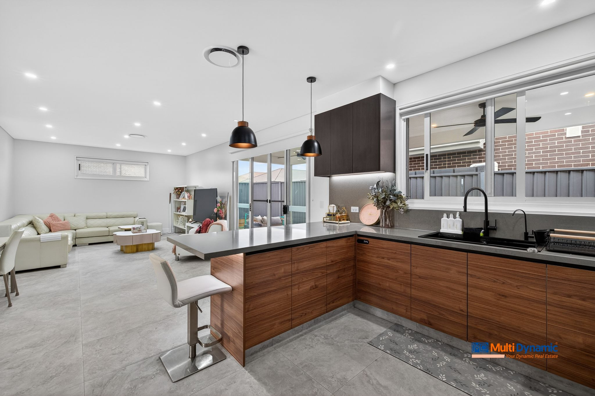 This beautifully appointed two-storey residence, positioned near a peaceful park, showcases elegant marble finishes, smart-home technology, and a thoughtfully designed floor plan, ideal for modern family living. Key Features: • Five bedrooms including a downstairs bedroom with ensuite, plus four bedrooms upstairs with built-in wardrobes and a master suite with walk-in robe and private ensuite • Three and a half bathrooms, including a downstairs powder room and a fully tiled upstairs bathroom with floor-to-ceiling, two-tone finishes • Open-plan living, kitchen and dining area complemented by a stone benchtop kitchen with ample storage, adjoining laundry, and linen cupboards on both levels • Upstairs rumpus room and small balcony, marble staircase, and marble tiling throughout • Home office conversion, small outdoor seating area, brick-built entry walkway, and sandstone frontage • Side access on both sides, security cameras, downlights throughout, exterior downlighting, and ducted air conditioning with Wi-Fi control A stylish, move-in-ready residence offering quality finishes, intelligent features, and a low-maintenance lifestyle in a sought-after, park-side setting. For further information, please contact Tirtha on 0411 574 773. Disclaimer: Multi Dynamic believes that all information contained herein to be true and correct to the best of our ability and in no way misleading; however, all interested parties are advised to carry out their own enquiries and relevant searches.