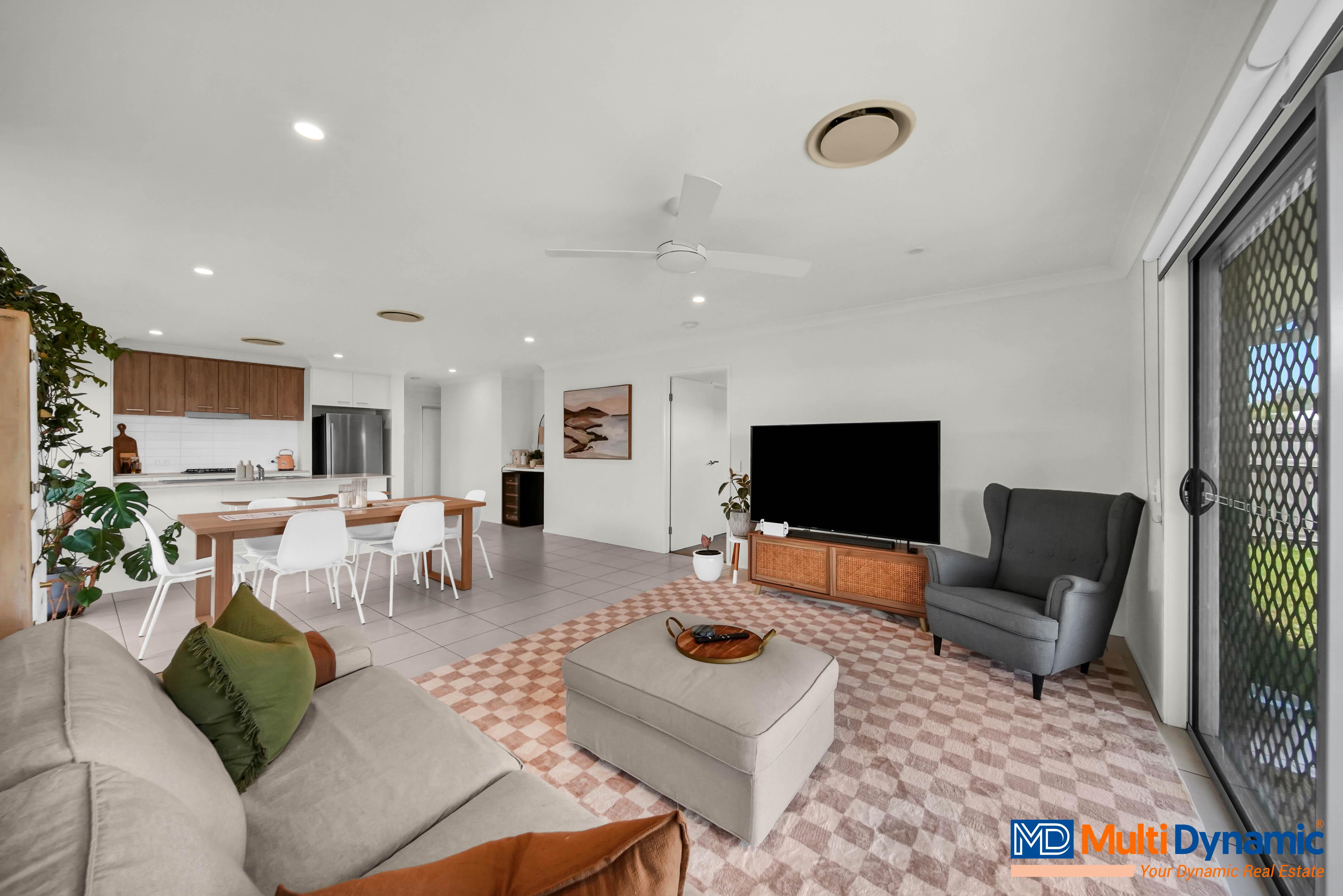 Discover this beautifully appointed 4-bedroom, 2-bathroom home that offers the perfect blend of comfort, convenience, and lifestyle. Thoughtfully designed for family living and entertaining, this residence ticks all the boxes for modern day comfort. Key Features: • Open plan living, dining, and kitchen areas ideal for gatherings and entertaining. • Equipped Kitchen with quality appliances, ample bench space, and a breakfast bar. • Generous bedrooms filled with natural light and built-in storage. • Private Master Suite complete with walk-in robe and ensuite. • Ducted air conditioning and ceiling fans throughout. • Covered patio and easy-care backyard perfect for family barbecues or quiet evenings. • Double Garage with internal access and extra storage space. Location Highlights: • Situated in a quiet, family-friendly street surrounded by quality homes • Only minutes to Griffin State School and Murrumba State Secondary College • 5 mins to Murrumba Downs Shopping Centre and 10 mins to Westfield North Lakes • Easy access to Bruce Highway connecting you to Brisbane and the Sunshine Coast • Close to public transport, parks, and boat ramps - perfect for weekend adventures • A short drive to Suttons Beach, Settlement Cove Lagoon, and Redcliffe Esplanade cafés This home offers the ultimate blend of modern living and lifestyle convenience - perfect for families, first-home buyers, or investors. Contact today to arrange your private inspection and experience the Griffin lifestyle for yourself! Disclaimer: While every effort has been made to ensure the accuracy of the information contained herein, Multi Dynamic Southport, its agents, and representatives accept no responsibility and disclaim all liability for any errors, omissions, inaccuracies, or misstatements. Interested parties are encouraged to make their own enquiries and seek independent advice to verify the details provided.